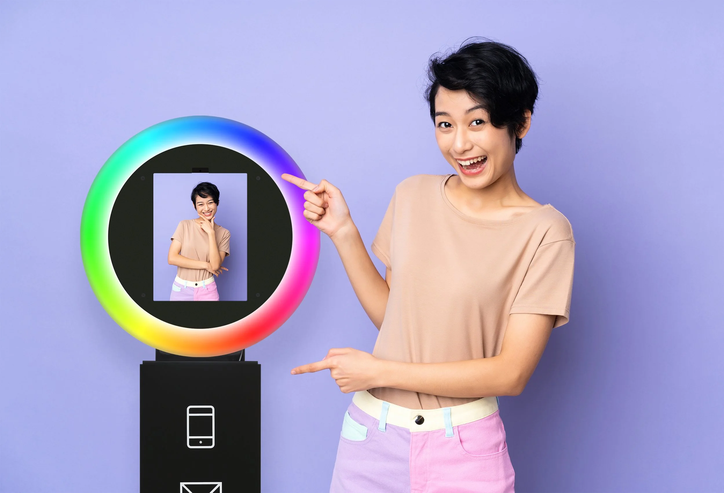 Unlike drop-off booths, our Selfie Station includes a warm, professional attendant who keeps things flowing, helps guests, and makes sure everyone gets their moment to shine.